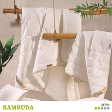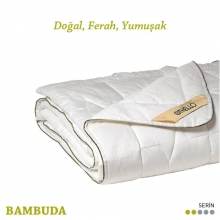 Bambuda  yorgan 300 gr/m²  doğal bambu elyaf karışımı dolguludur. Şık krem rengi jakar desenli kumaşı ve  yeşil saten biyesi ile çok şıktır.   5 üzerinden 2 ısıtma derecesine sahip serin bir üründür.  Bahar aylarında yumuşak ve hafif hissi olan serin yorgan yorgan isteyenler için idealdır.