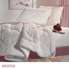 Nuova yorgan 350 gr/m² %100 HCS virgin elyaf dolgusu , çift taraflı kullanımı , şık kapitone deseni ve pembe  ayrıştırıcı saten biyesi ile albenisi yüksek bir üründür. 5 üzerinden 4 ısıtma derecesine sahip sıcak bir üründür. Yumuşak, dolgun ve sıcak yorgan isteyenler için idealdır.