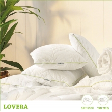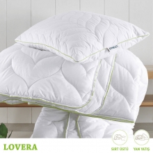 Lovera yastık 855 gr. %100 HCs virgin boncuk elyaf dolgulu bir yastıktır. Boncuk elyaf ezilmeye karşı daha dayanıklı ve esnek bir dolgudur. Elle havalandırarak eski şekline geri getirilebilir. Yan ve sırt üstü yatanlara tavsiye edilir. Lovera yastığın dışında bulunan fermuarlı kapitone  alez sık sık yıkanabilir ve iç yastığın temiz kalmasını sağlar. İç yastık yine fermuarlıdır. Fermuarı açarak hem dolgu malzemesini görebilir hem de isteğinize göre içerisinden dolgu çıkararak daha alçak kullanım ile rahatlığınızı destekleyebilirsiniz. Lovera yastığın dış kumaşı  Aloe Vera ile zenginleştirilmiş optik beyaz mikro kumaştır.  Ölçüsü standart 50x70 cm’dir.