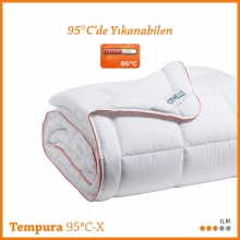 Yorganımız 350 gr/m²  Thermolite 95°C elyaf dolguludur. 5 üzerinden 3 ısıtma derecesine sahip ılık bir üründür. Dolgun, yumuşak ve yüksek ısıda yıkamaya dayanıklıdır. Tempura 95°C-X  yorganın  dış kumaşı  yüksek derecede yıkamaya dayanıklı mikro kumaştır.  Tek kişilik (155x215 cm ) , Çift Kişilik ( 195x215 cm) ve Battal Boy (215x235 cm) olarak 3 ölçüsü bulunmaktadır.